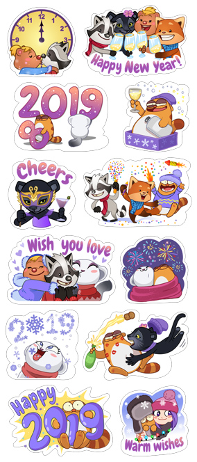 Набор стикеров Happy New Year 2019 Изображение — Набор стикеров Happy New Year 2019 для Viber – фото 2 Добавить в Viber Вам также может быть интересно Набор стикеров Among Us 2020 Набор стикеров berry Набор стикеров Bundle Up! Набор стикеров Crime raccoon Набор стикеров Cuphead Stickers (RUS) Набор стикеров Fan Girl Is Here Набор стикеров Gagarin Набор стикеров Garfield Набор стикеров Hulk art Набор стикеров IntergaLACTIC