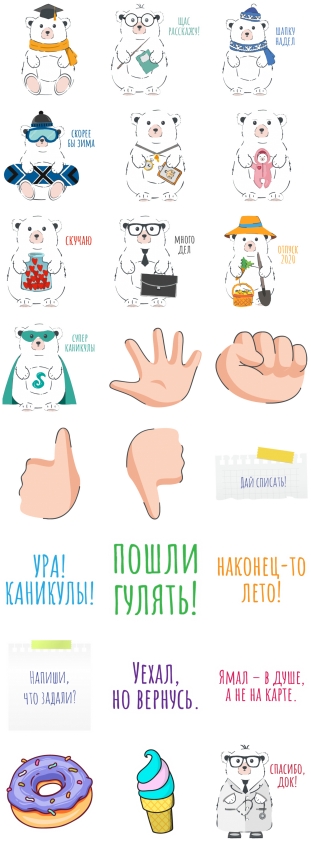 Набор стикеров МишкаЯмала Изображение — Набор стикеров МишкаЯмала для Viber – фото 2 Добавить в Viber Вам также может быть интересно Набор стикеров Among Us 2020 Набор стикеров berry Набор стикеров Bundle Up! Набор стикеров Crime raccoon Набор стикеров Cuphead Stickers (RUS) Набор стикеров Fan Girl Is Here Набор стикеров Gagarin Набор стикеров Garfield Набор стикеров Hulk art Набор стикеров IntergaLACTIC