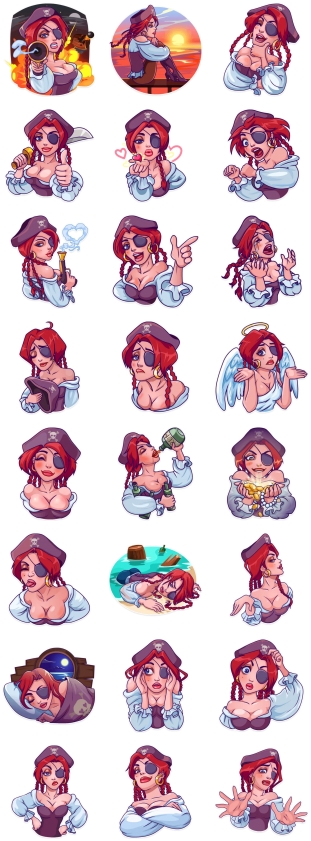 Набор стикеров Пиратка Рика Изображение — Набор стикеров Набор стикеров Пиратка Рика для Viber – фото 2 Добавить в Viber
