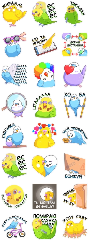 Набор стикеров Попуги Изображение — Набор стикеров Набор стикеров Попуги для Viber – фото 2 Добавить в Viber