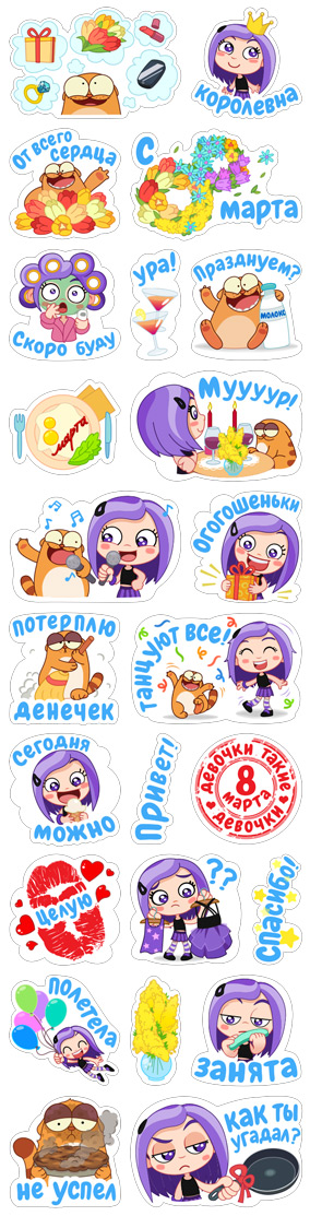 Набор стикеров С 8 марта Изображение — Набор стикеров С 8 марта для Viber – фото 2 Добавить в Viber Вам также может быть интересно Набор стикеров Among Us 2020 Набор стикеров berry Набор стикеров Bundle Up! Набор стикеров Crime raccoon Набор стикеров Cuphead Stickers (RUS) Набор стикеров Fan Girl Is Here Набор стикеров Gagarin Набор стикеров Garfield Набор стикеров Hulk art Набор стикеров IntergaLACTIC