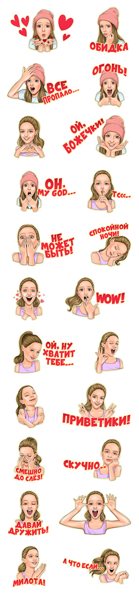 Набор стикеров Самая позитивная девочка Изображение — Набор стикеров Самая позитивная девочка для Viber – фото 2 Добавить в Viber